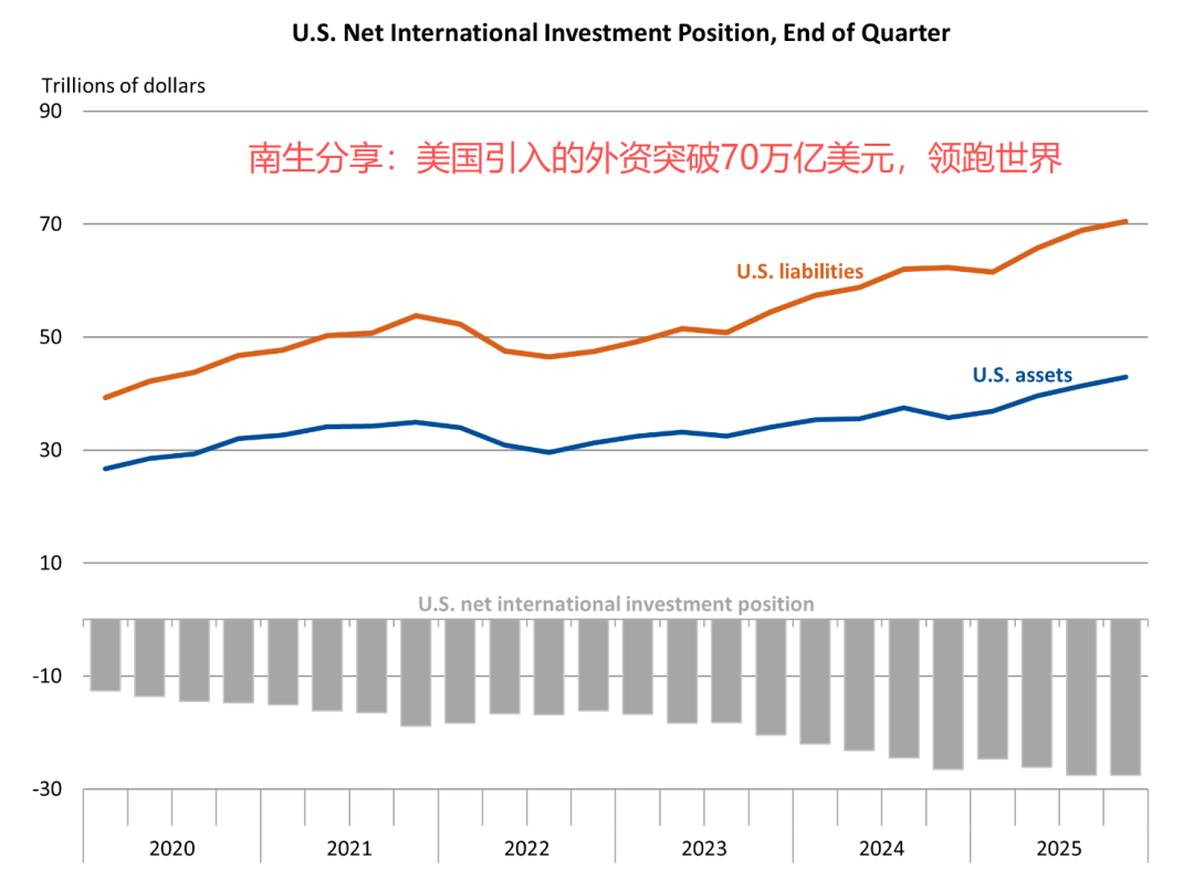 全球列国、地区究竟给好意思国输了些许“血”,这个问题的谜底如故由好意思国商务部揭晓了——截止2025年年末的国际投资头寸表表露:冲破70万亿好意思元,是好意思国GDP的2倍多,领跑天下。