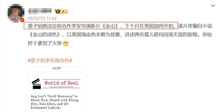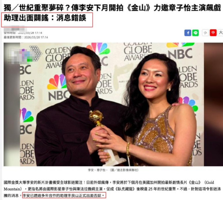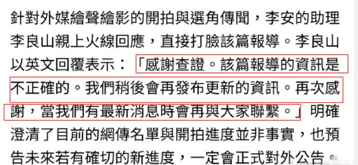 最新音尘裸露,李安助理已于昨日亲身出头否定了网传的《金山》选角一事。