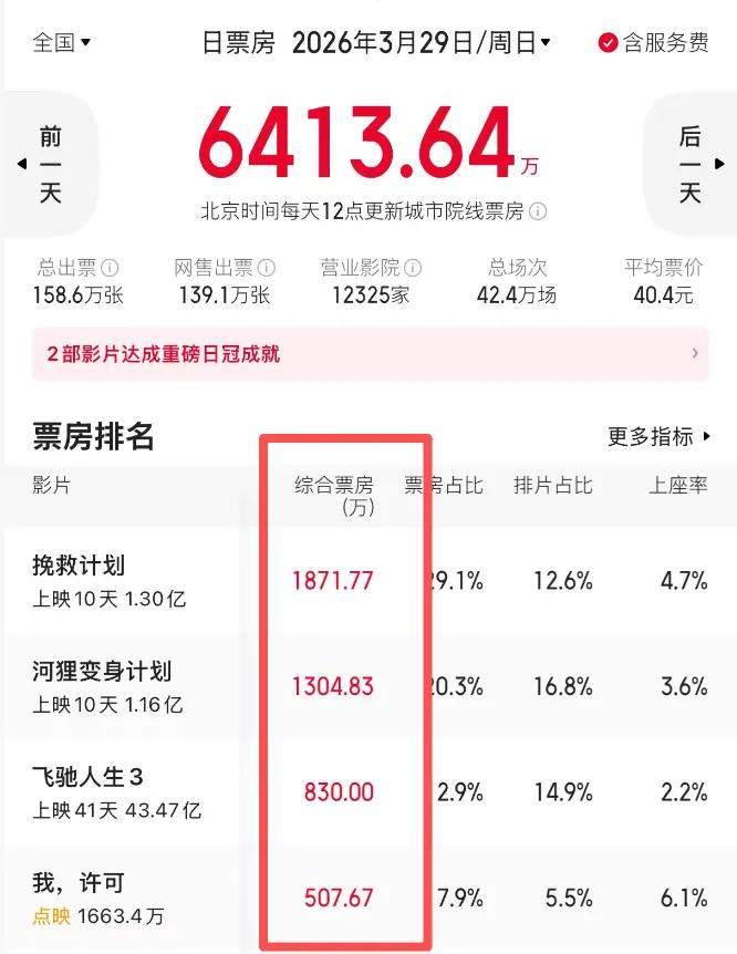 就从昨天的单日收货来说,《扶助野心》1800万,《驰骋东说念主生》和《镖东说念主》加起来是1300万,沈腾吴京加起来都打不外。