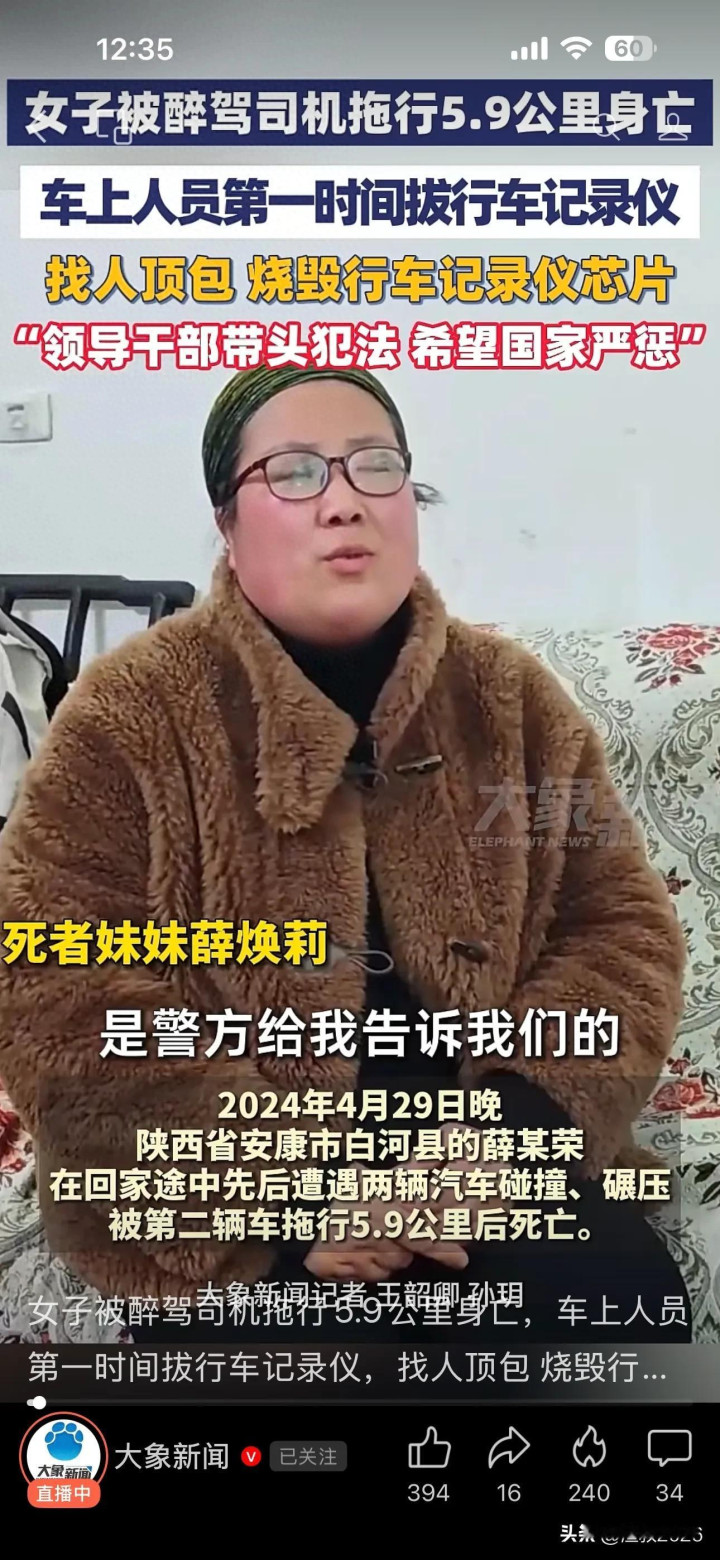 据大象新闻4月1日发布音问称:2024年4月29日晚,陕西省安康市白河县的薛某荣,在回家途中先后际遇两辆汽车碰撞、碾压被第二辆车拖行5.9公里后死一火。