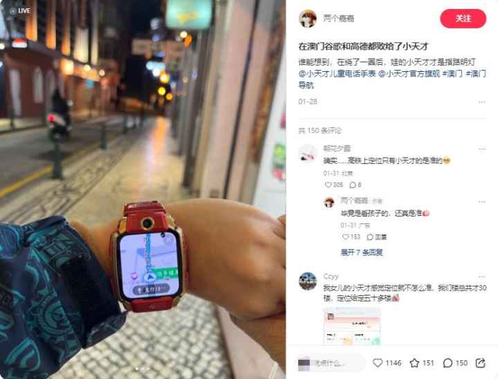 自然,敢这样“闭幕”,皆备是诞生在对“电子护理”的信心上。定位功能不仅仅用来找孩子,要道时刻还能当向导。有姆妈共享全家在澳门旅游的阅历,大东谈主手机里的舆图软件全失效,临了竟是靠孩子的小天才来导航指路。