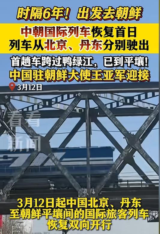 3月12日中朝海外游客列车肃穆规复双向开行,北京至平壤、丹东至平壤的澄莹重启,中断6年的中朝铁路往复透彻回反浅近。