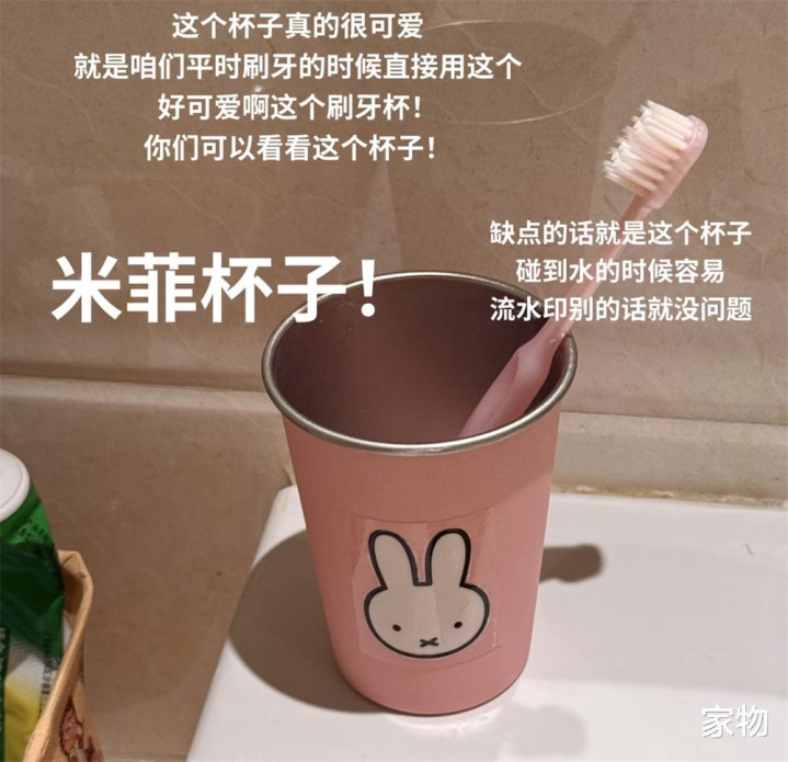 这刷牙杯刚好戳中了我,磨砂不锈钢的材质上一个米菲的图案,很有质感;关键是摸上去也终止易留住指纹萍踪,好用,爱用。