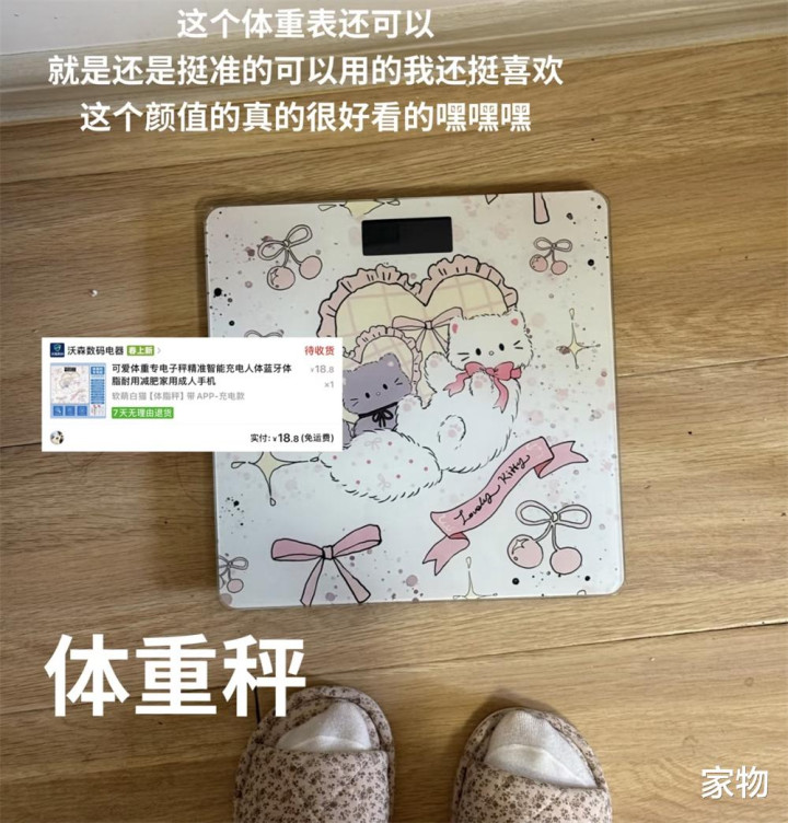当今的电子体重秤其实并莫得什么时间含量,比较于许多大牌子上百元的电子秤来说,若是你仅仅念念要测量个体重的话,这小小的卡通电子秤完竣够用。