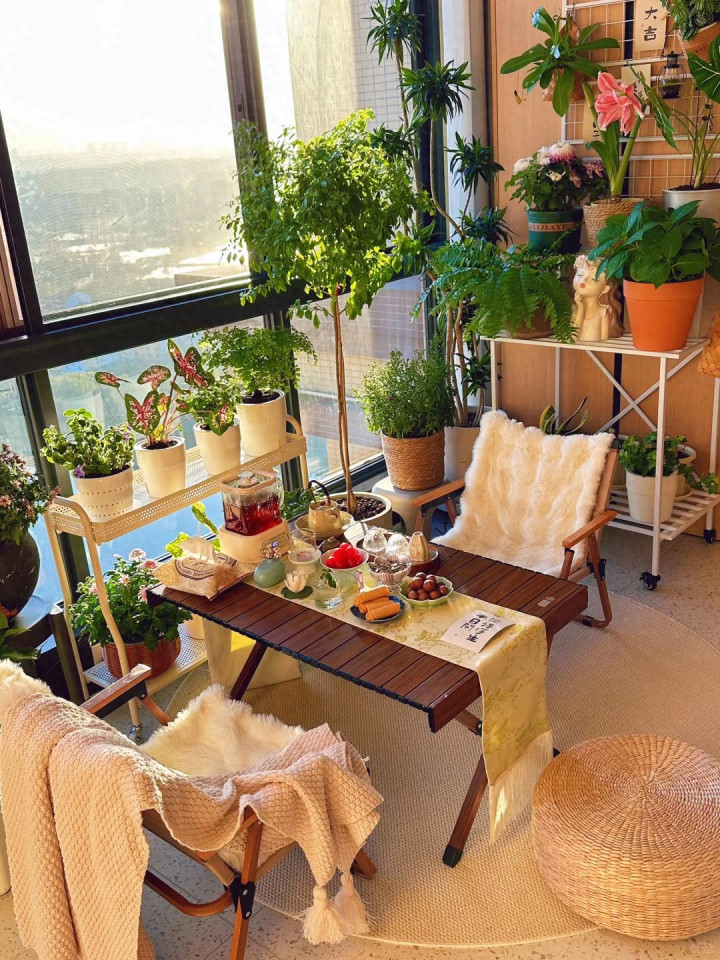 阳台就那么几平米,可它偏巧把一个东说念主奈何过日子,叮属得清澄莹爽。