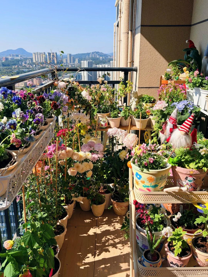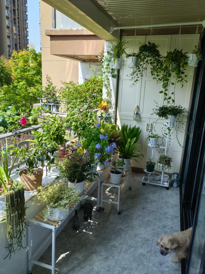 这种阳台最让东说念主安谧。途经的技术昂首看一眼,就合计这家东说念主把日子过得热热烘烘的。能把我方家阳台用成这么,是方法,亦然福泽。