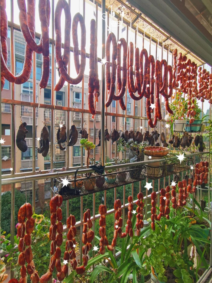 有些阳台,一到冬天就挂满腊肠腊肉,油一滴一滴往下掉。有些阳台晒着萝卜干、腌着雪里蕻,途经都能闻到味儿。