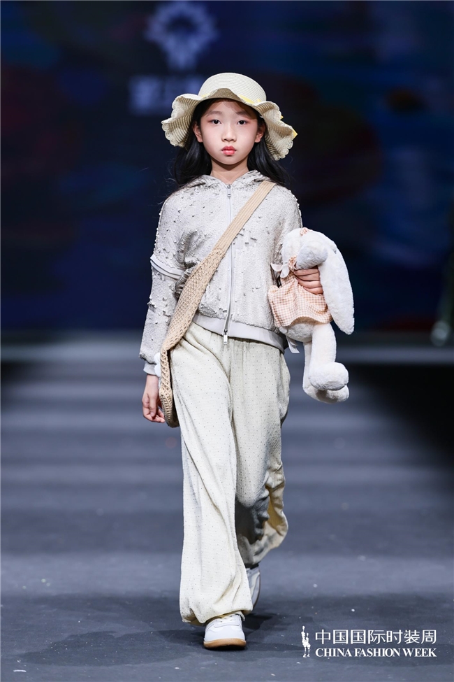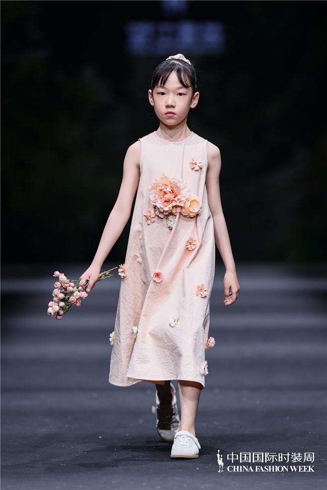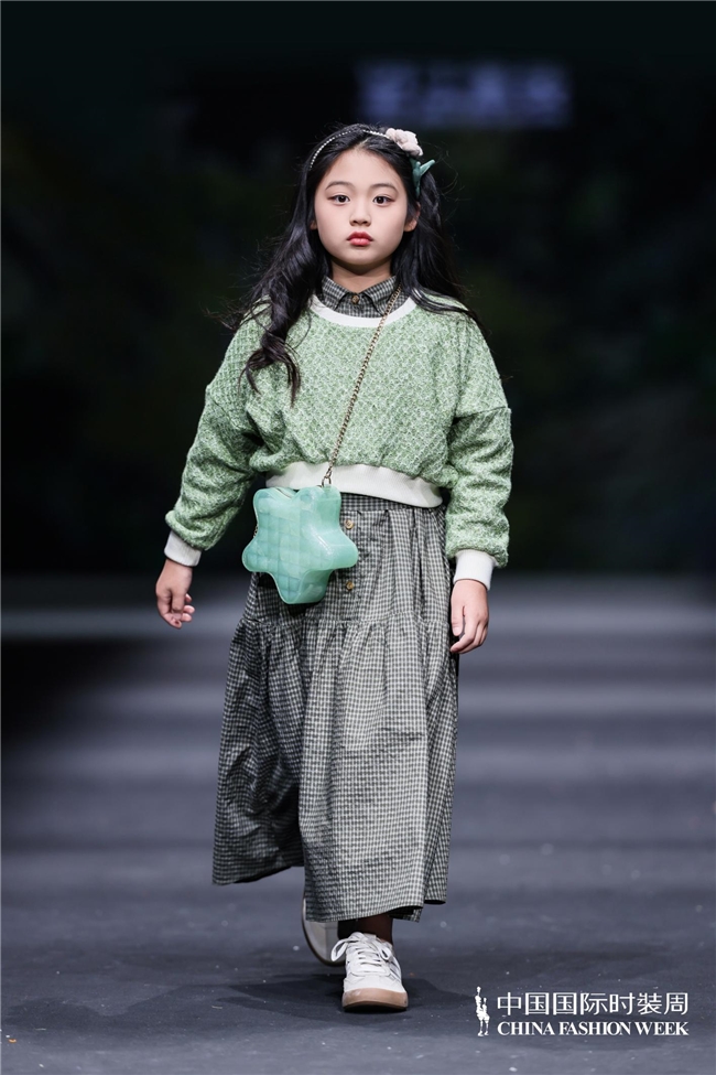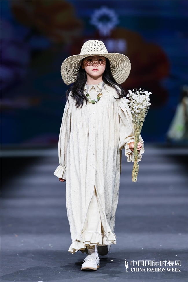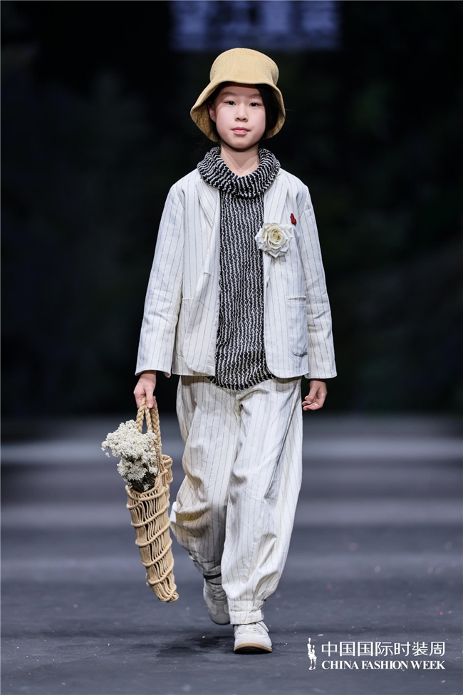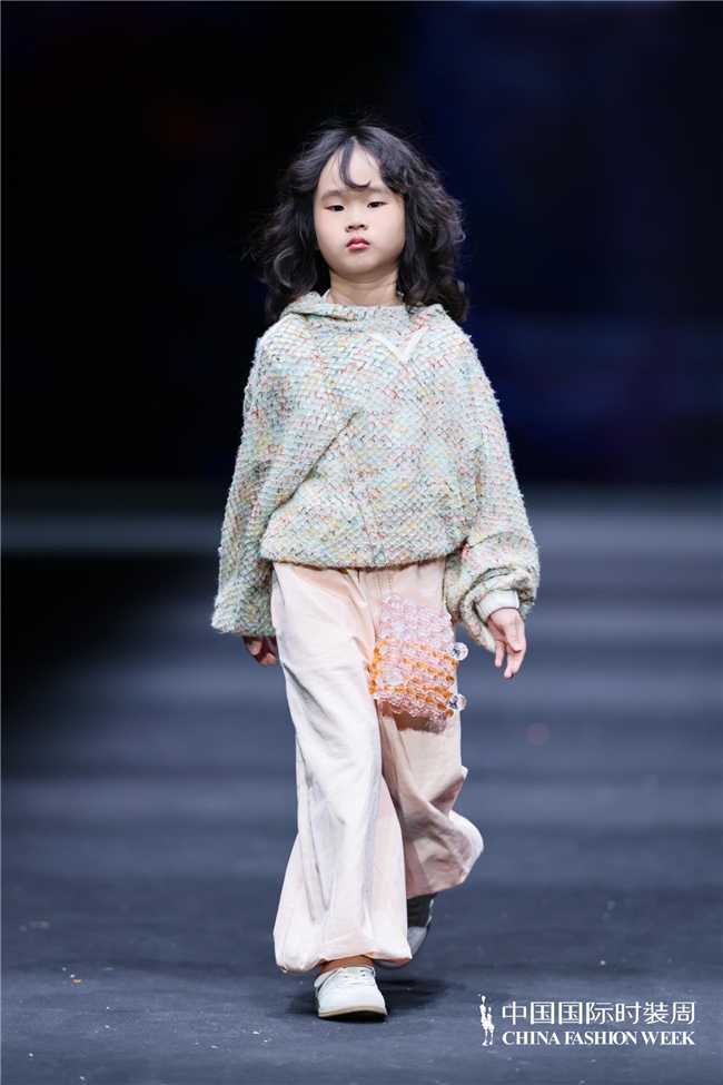 颜色由当然、柔软的田野色系渐渐过渡到粉色、绿色、白色等更为明快的组合,使全体视觉愈加崭新、舒展。廓形在连接宽松特征的同期,通过条理与比例的诊治,使服装梗概更好地稳健儿童在平方活动、户外舒服以及节沐日等多种场景中的衣服需求。