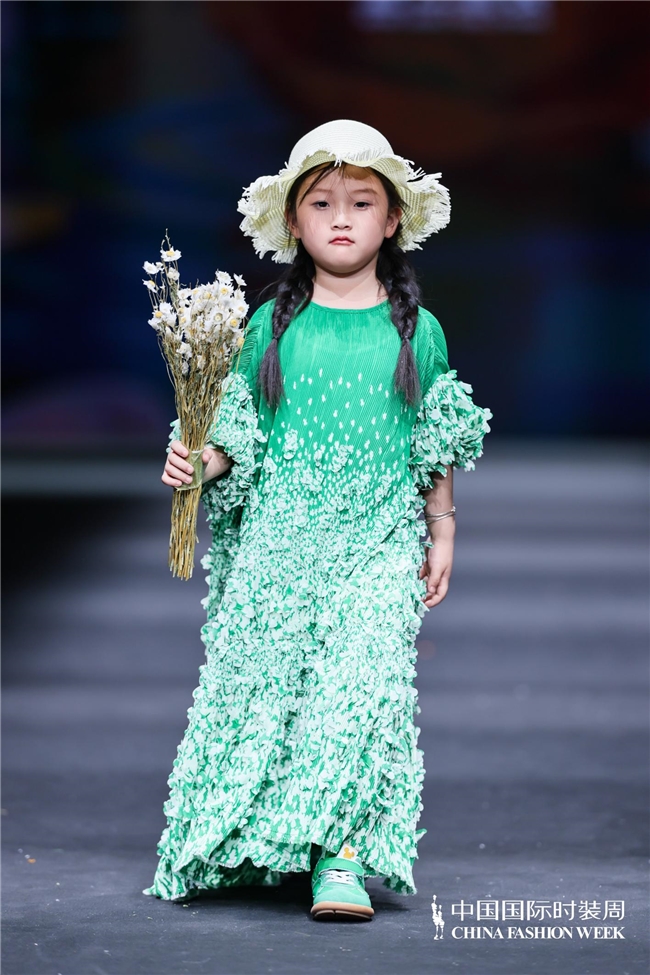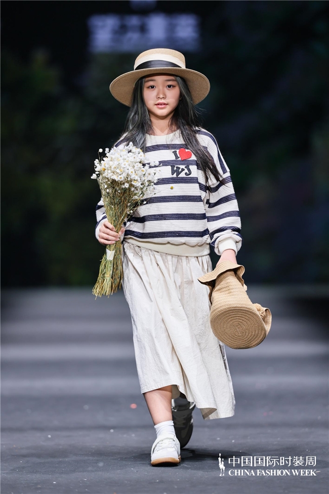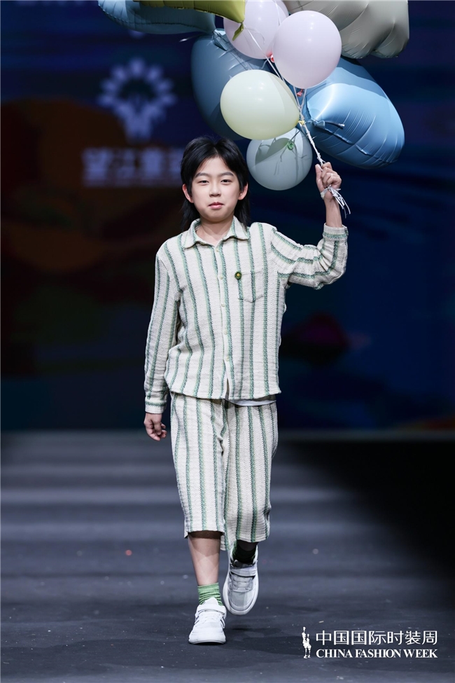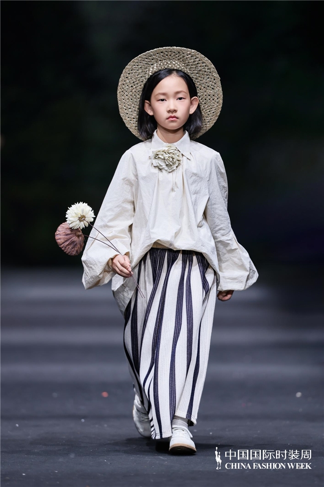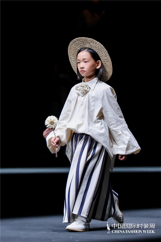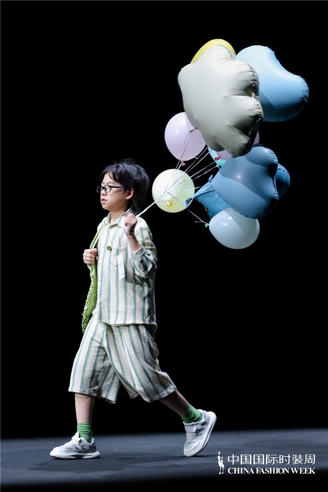 颜色由当然、柔软的田野色系渐渐过渡到粉色、绿色、白色等更为明快的组合,使全体视觉愈加崭新、舒展。廓形在连接宽松特征的同期,通过条理与比例的诊治,使服装梗概更好地稳健儿童在平方活动、户外舒服以及节沐日等多种场景中的衣服需求。