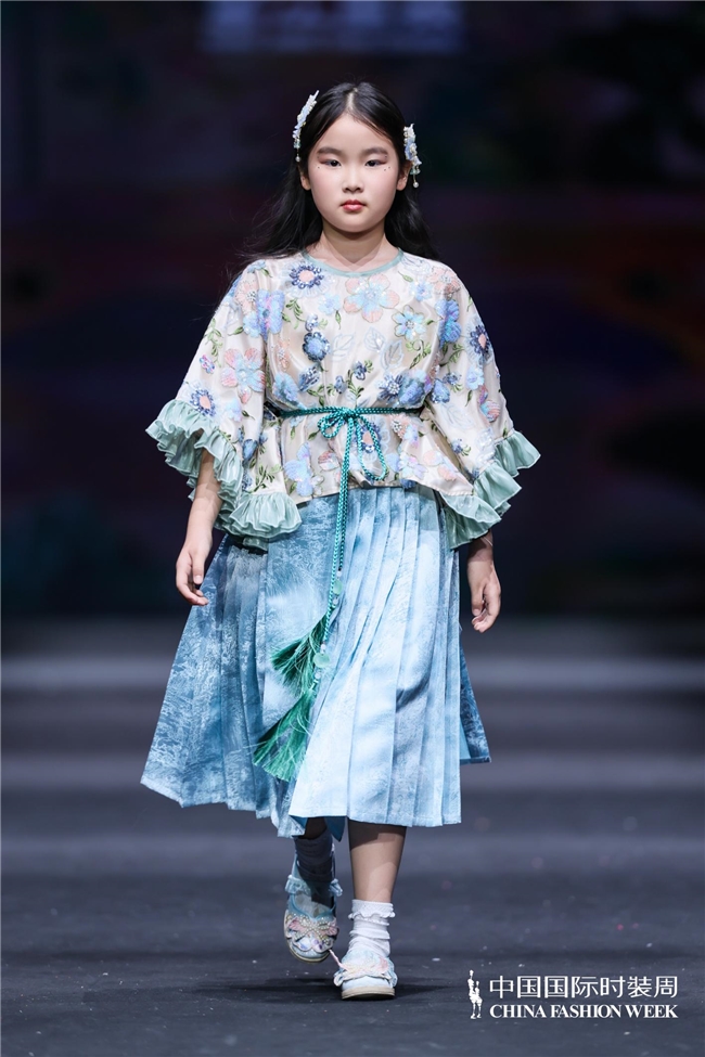 与“春野漫行”所呈现的当然与活命场景不同,“萌骥花马”主题系列将视角转向传统文化语汇在童衣中确现代抒发。遐想师蒋卓君以非遗望江挑花为切入,将其与改革汉服元素相结合,并围绕马的兴味兴味造型、由挑花演变而来的几何纹样以及当然花草元素张开遐想,在保留文化意味的同期,也赋予全体更面临儿童审好意思的亲和力与微小感。