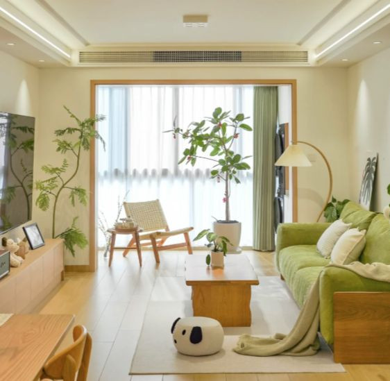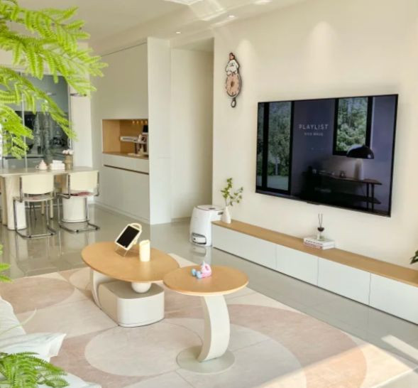 3分是主题色,主要体当今单东谈主椅、边柜、窗帘或大面积的遮挡画上。比如,你不错在米白色的客厅里,放入两把胡桃木色的藤编椅,再为落地窗换上一副亚麻原色的窗帘。当风穿过,帘布轻轻拂动,你会发现空间一忽儿有了“筋骨”——主题色赋予了空间性情,让原来平淡的基底有了视觉重点。