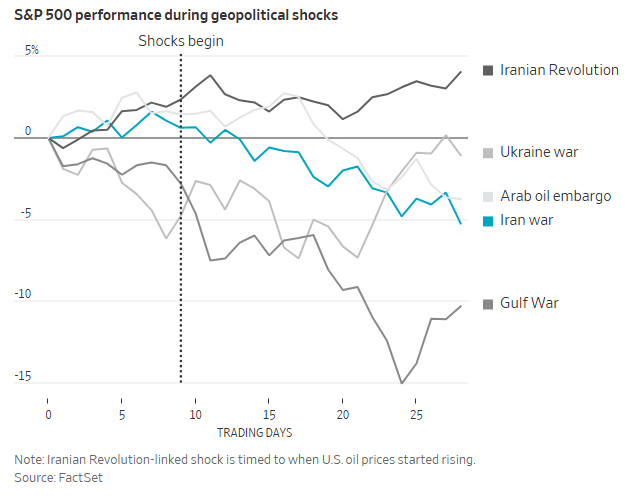 本周四,标普500指数和纳斯达克指数刚刚录得了2月28日好意思以伊开战后的最大单日跌幅。而从本轮战事爆发以来好意思股的走势看,其抛售进度基本与以往地缘政事冲击后的负面响应一致。